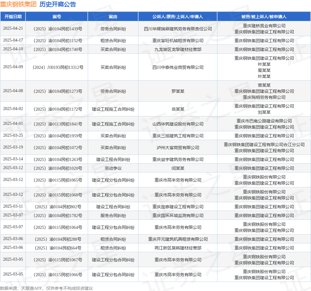 本站消息,根据天眼查APP显示,近日公布了一则重庆钢铁集团建设工程有限公司作为被告/被上诉人的开庭公告,详细内容如下: